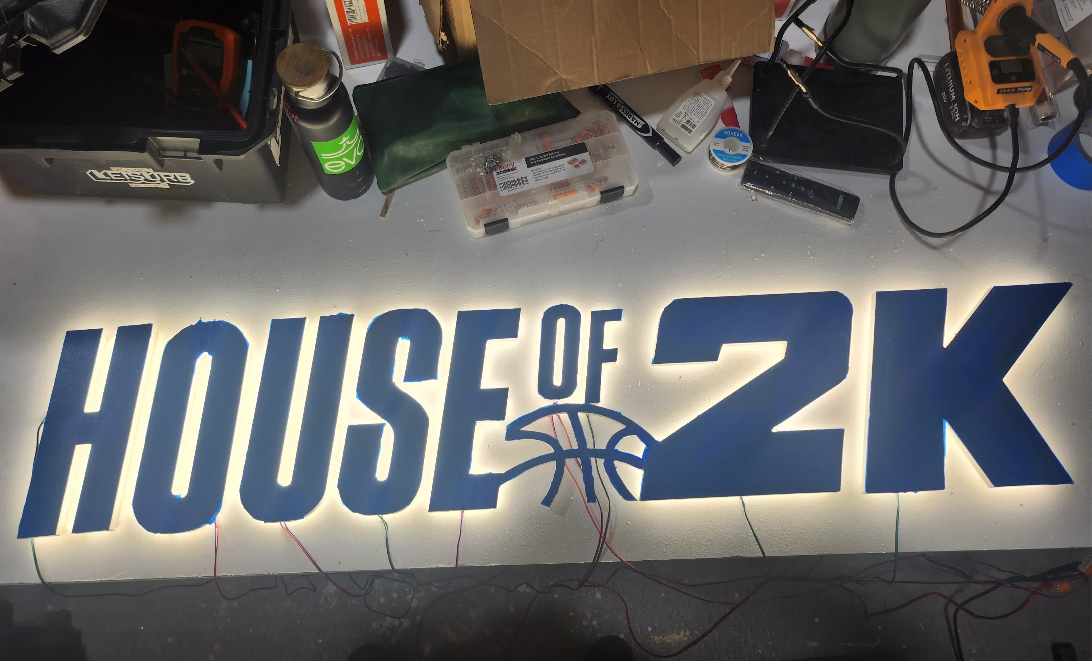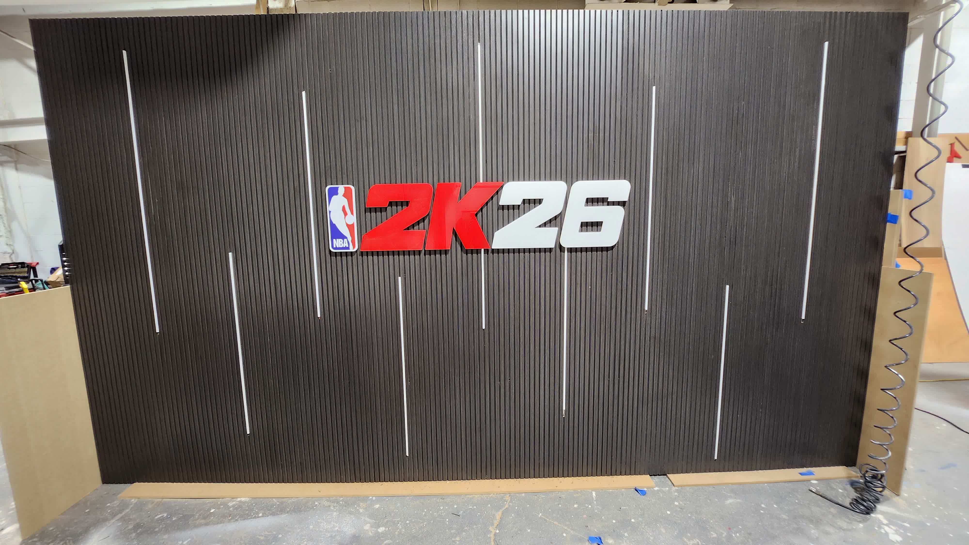 Laminated channeled walls and backlit MDF lettering.